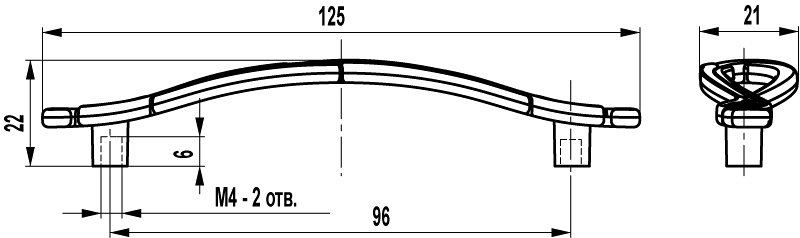 Габаритные размеры ручки: